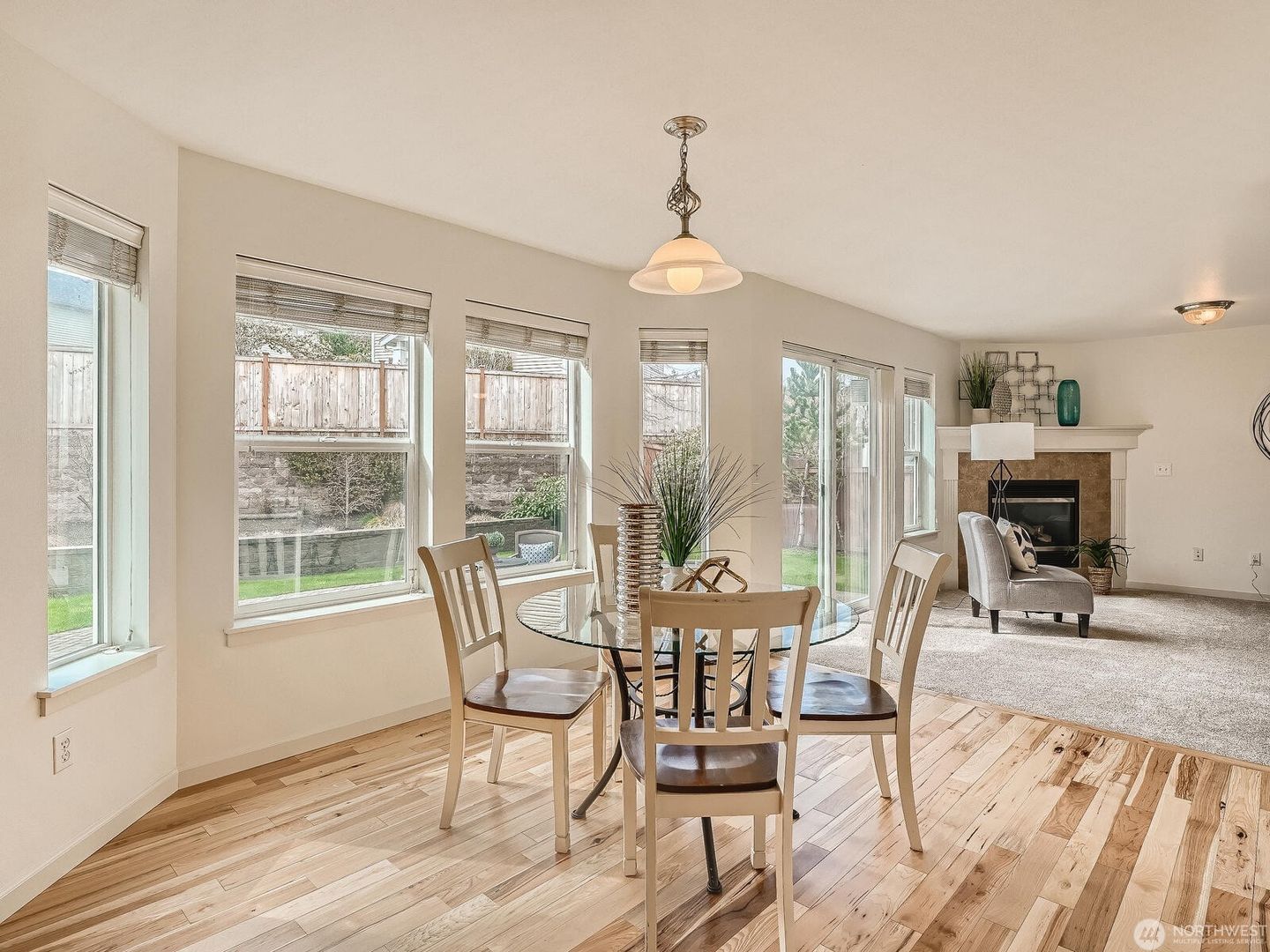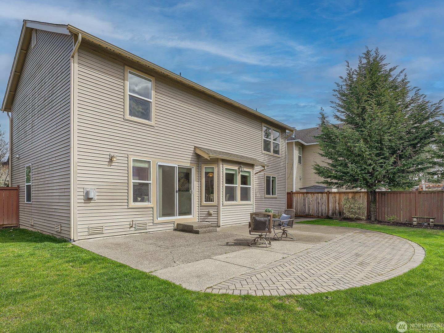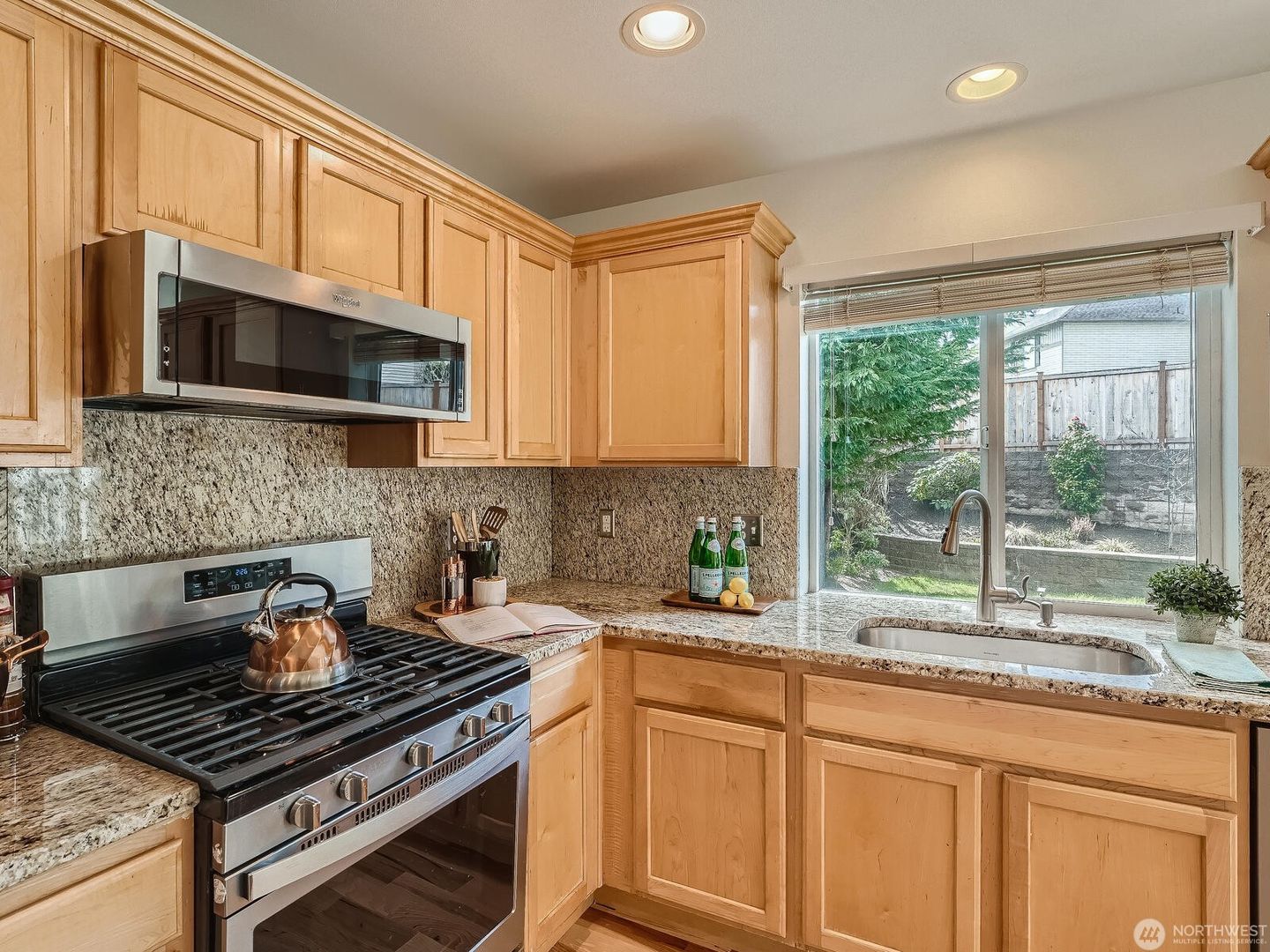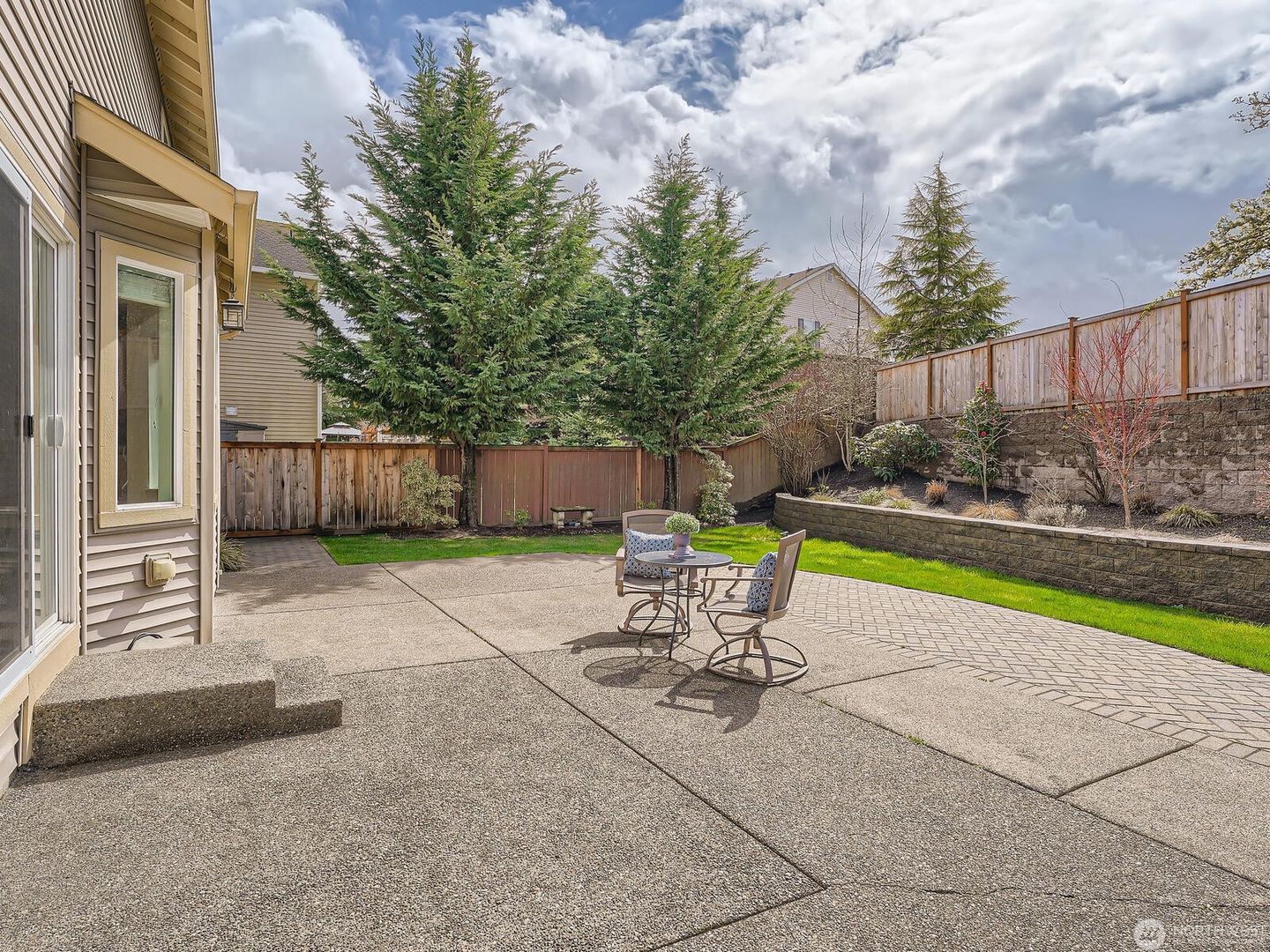 Additional features include a gas fireplace and heat pump for efficient heating and cooling year-round. The fully fenced backyard offers terraced garden space and an extended patio, perfect for grilling and outdoor entertaining. Enjoy living in a welcoming community with parks and play areas, conveniently located in the Renton Highlands with easy freeway access.