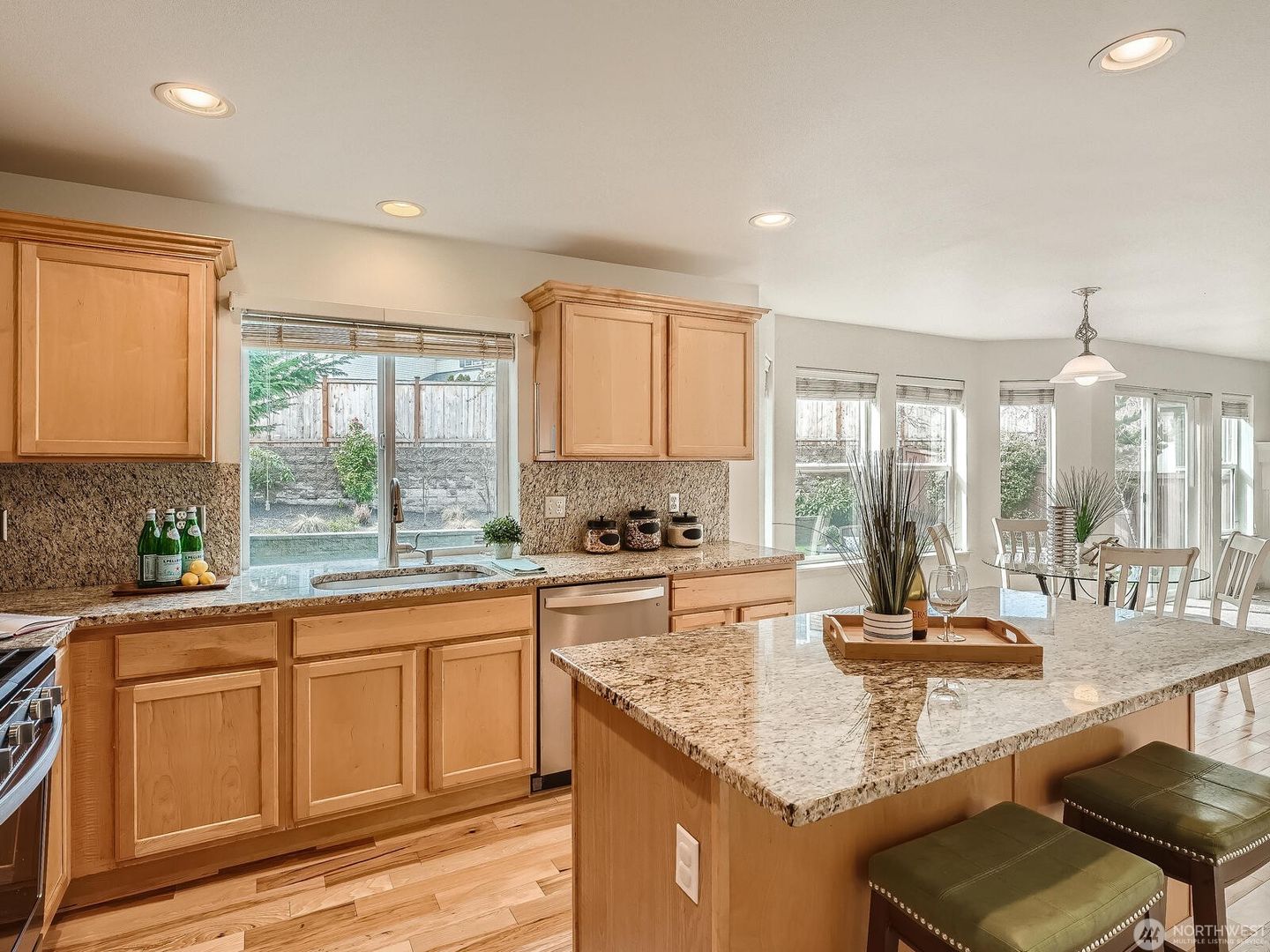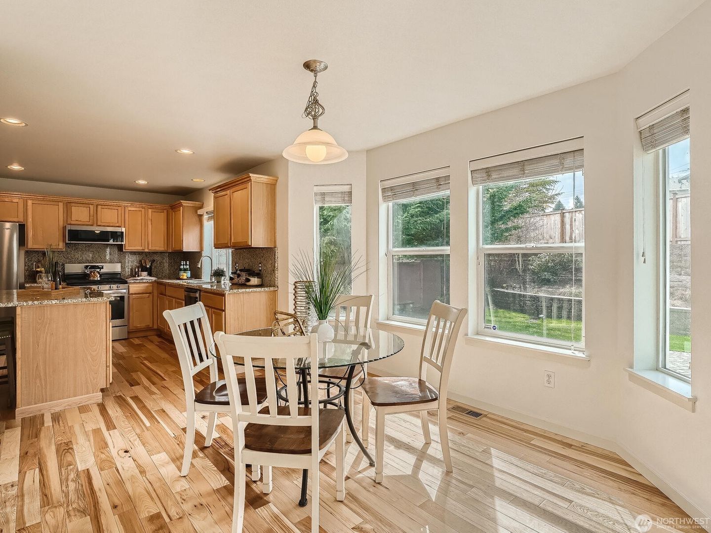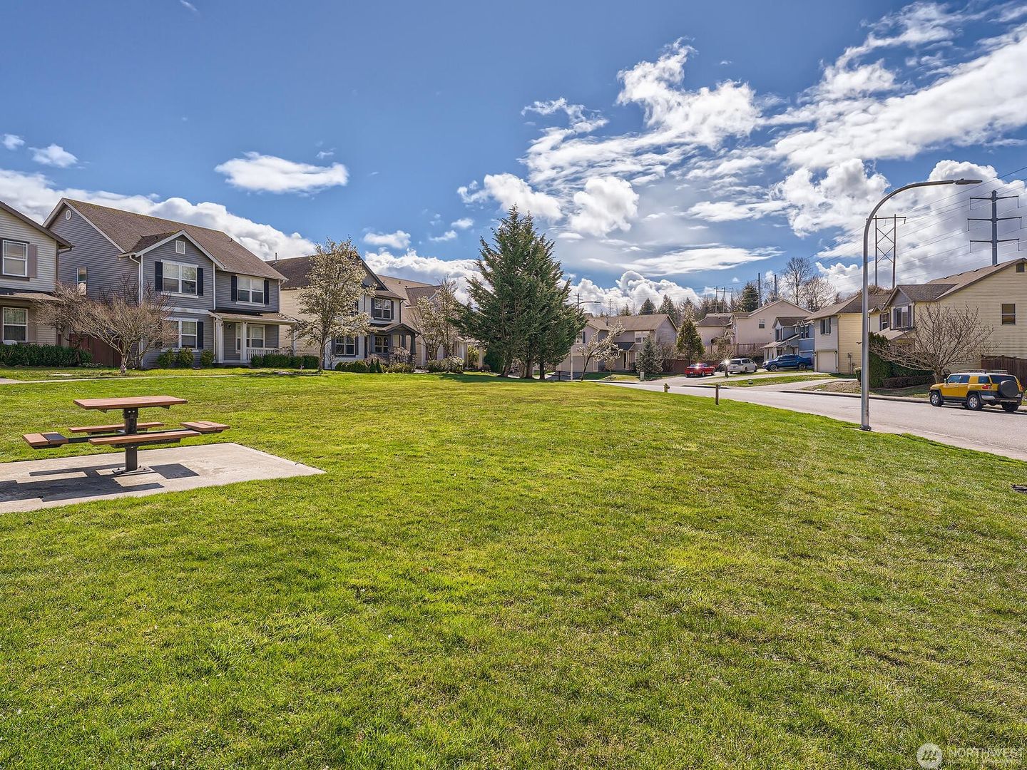 Additional features include a gas fireplace and heat pump for efficient heating and cooling year-round. The fully fenced backyard offers terraced garden space and an extended patio, perfect for grilling and outdoor entertaining. Enjoy living in a welcoming community with parks and play areas, conveniently located in the Renton Highlands with easy freeway access.