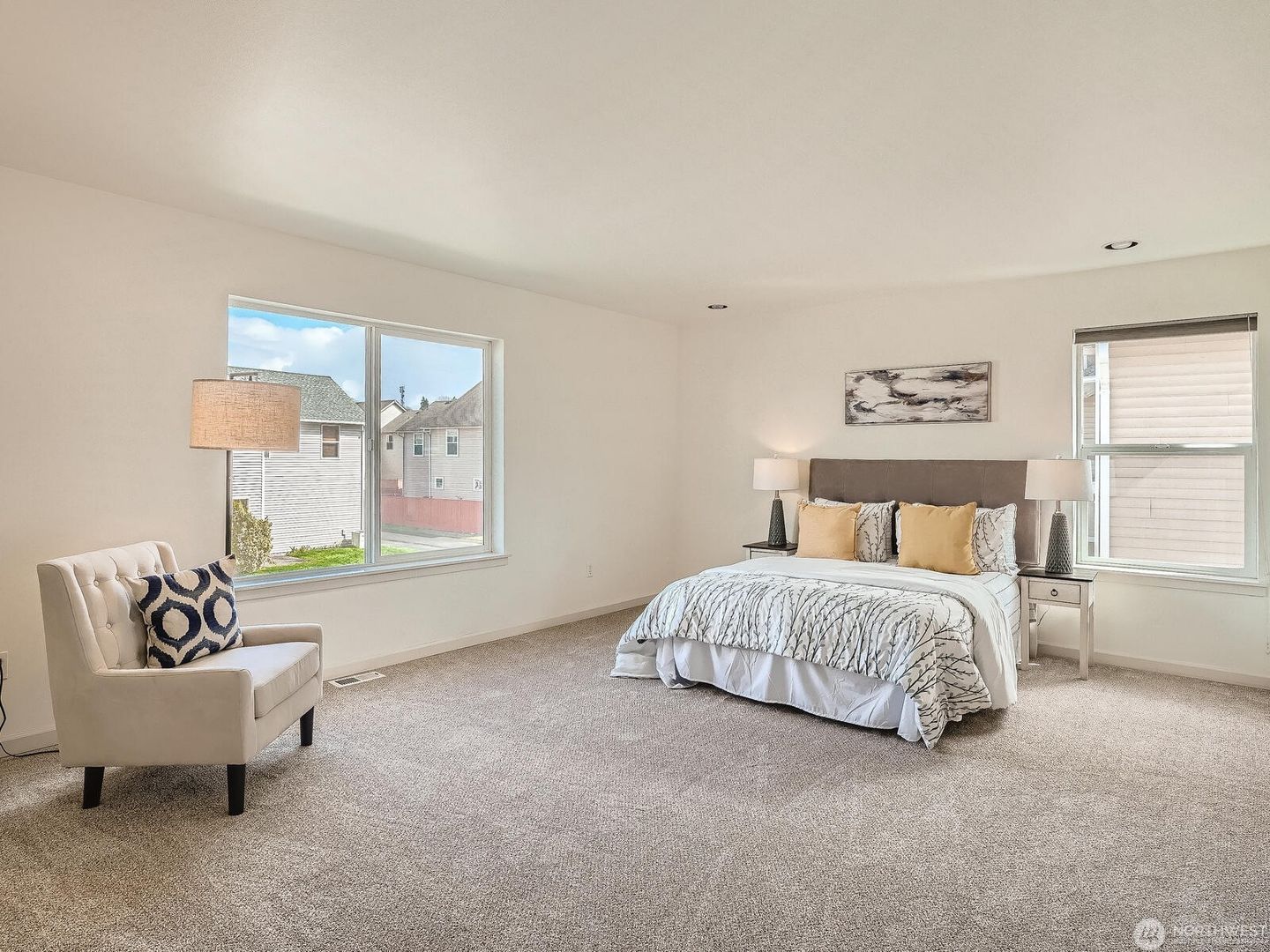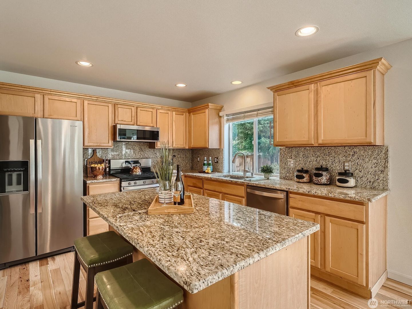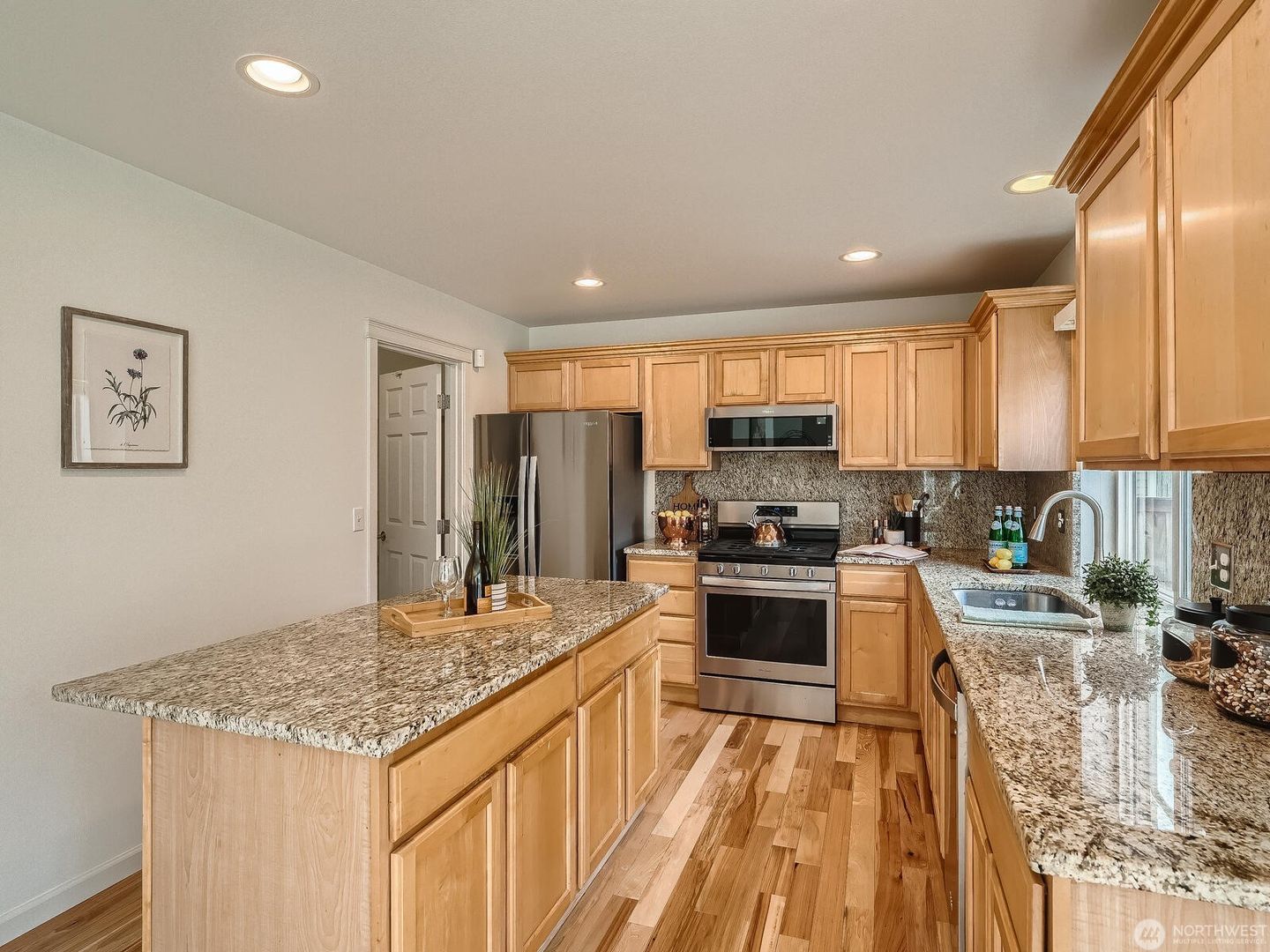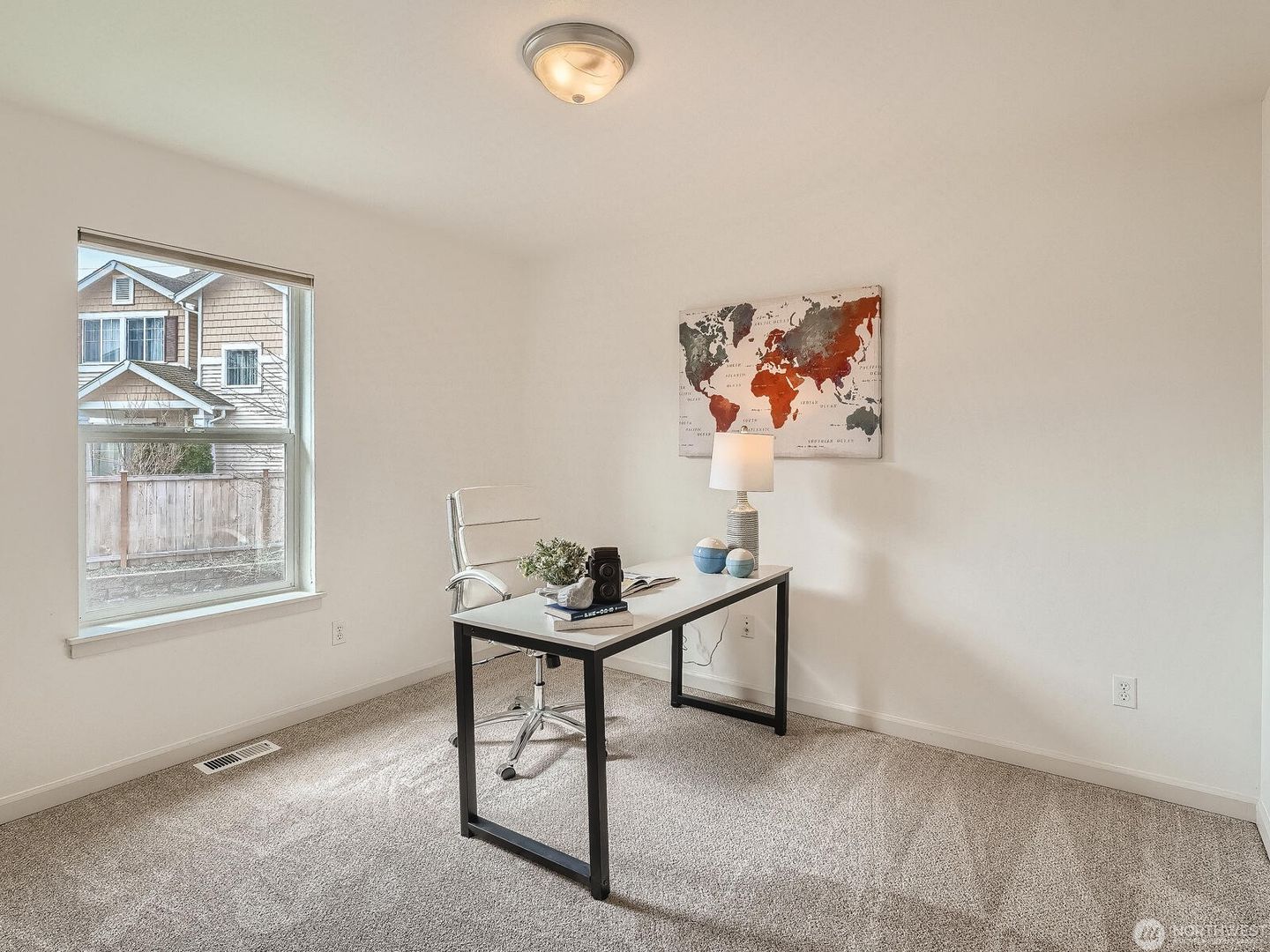 Additional features include a gas fireplace and heat pump for efficient heating and cooling year-round. The fully fenced backyard offers terraced garden space and an extended patio, perfect for grilling and outdoor entertaining. Enjoy living in a welcoming community with parks and play areas, conveniently located in the Renton Highlands with easy freeway access.